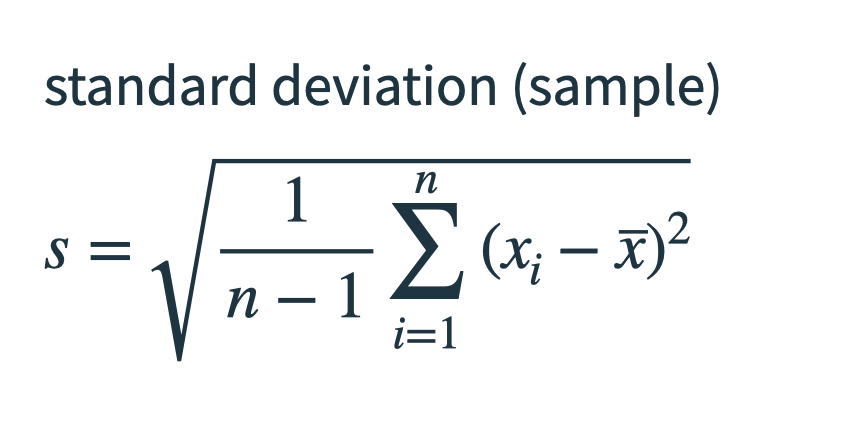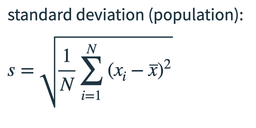 But when we compute measures like variance and standard deviation, it’s important to know whether we’re using a sample or the population, because the formulas differ slightly.