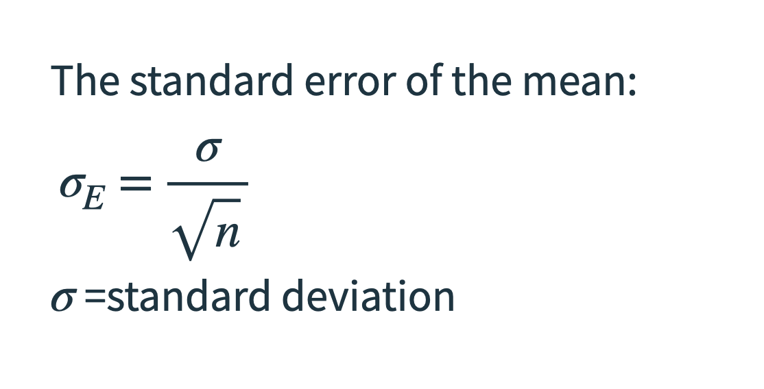 What is the standard error of the mean, or the standard error?Suppose we’re measuring the mean battery life of smartphones. We take one sample of phones and compute the mean battery life, then take another sample and do the same. These sample means will differ slightly, and the standard error tells us how much variation to expect between them. It’s calculated by dividing the standard deviation by the square root of the sample size, so increasing the number of observations in each sample reduces the standard error.