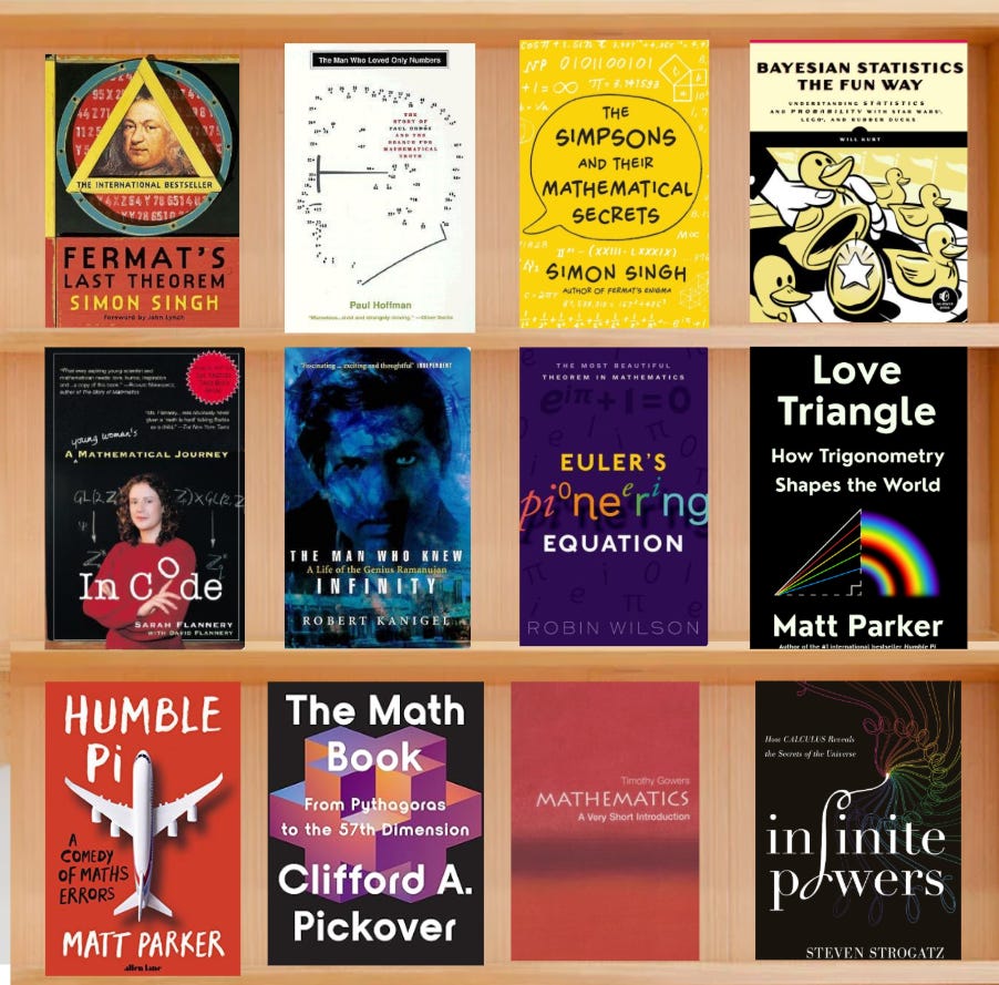 Bookshelf with enjoyable mathematical books
